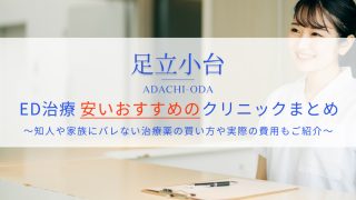 足立区足立小台駅から通うED治療が安いクリニックや病院おすすめ7選! 足立小台駅でED治療する際の安いおすすめのクリニックや病院をまとめました。バイアグラ、レビトラ、シアリスなどのED治療薬を安い値段で購入できるおすすめなクリニックや病院をご紹介しています。 2023.11.18足立区