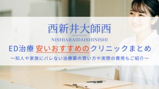 足立区西新井大師西駅から通うED治療が安いクリニックや病院おすすめ7選! 西新井大師西駅でED治療する際の安いおすすめのクリニックや病院をまとめました。バイアグラ、レビトラ、シアリスなどのED治療薬を安い値段で購入できるおすすめなクリニックや病院をご紹介しています。 2023.11.18足立区